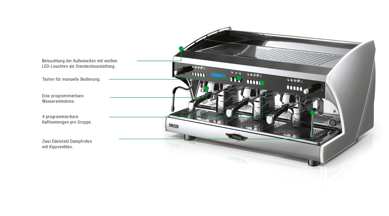 - 4 programmierbare Kaffeemengen pro Gruppe