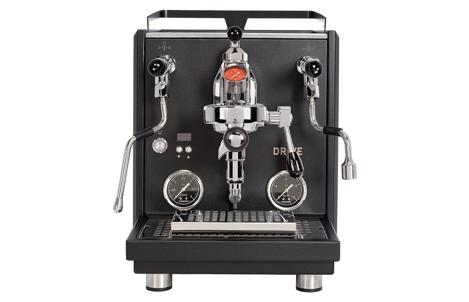 - 3 bar Dampfdruck- und 16 bar Pumpendruckmanometer mit schwarzen Ziffernfeldern.