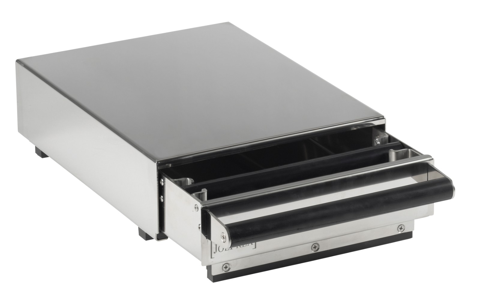 Diese Espresso-Sudschublade aus Edelstahl überzeugt durch Ihr schlichtes Äußeres in der modernen Küche und Ihre Affinität zu den gehobenen Espressomaschinen. Sowohl die Hülle als auch das Innenteil sind komplett aus Edelstahl gefertigt, verschweißt und poliert.