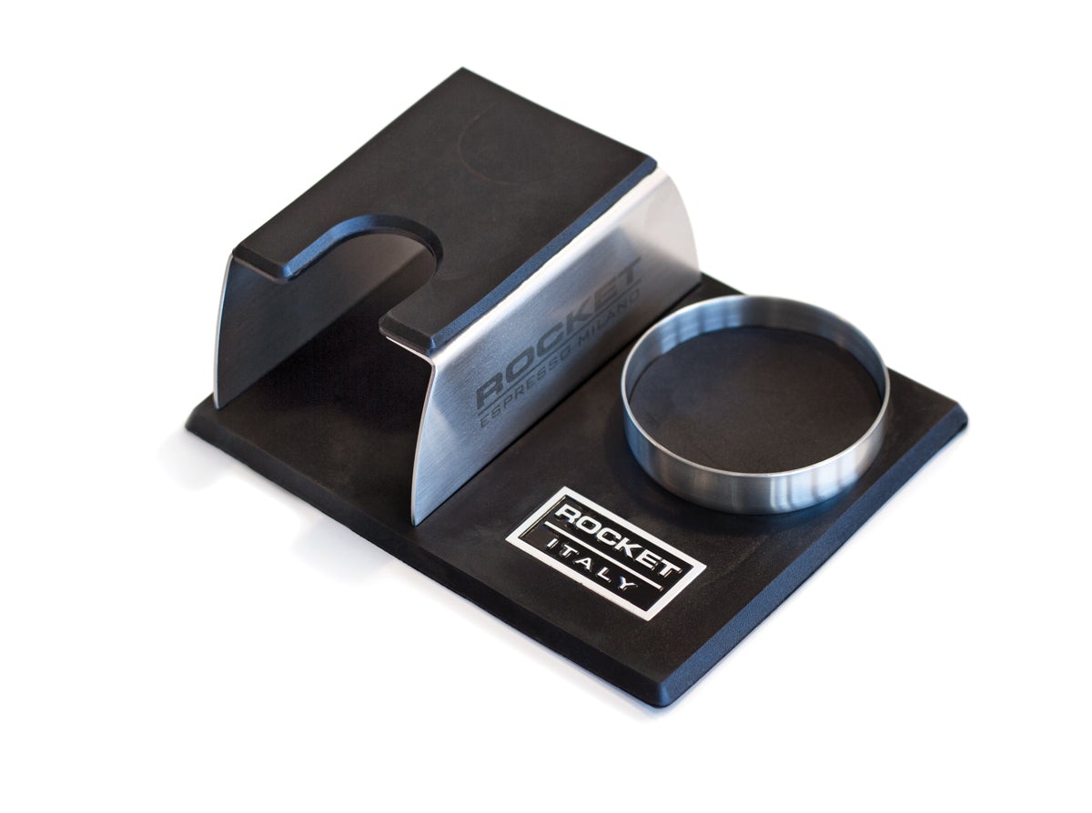 Tamper Station, hergestellt aus Edelstahl und Gummi.